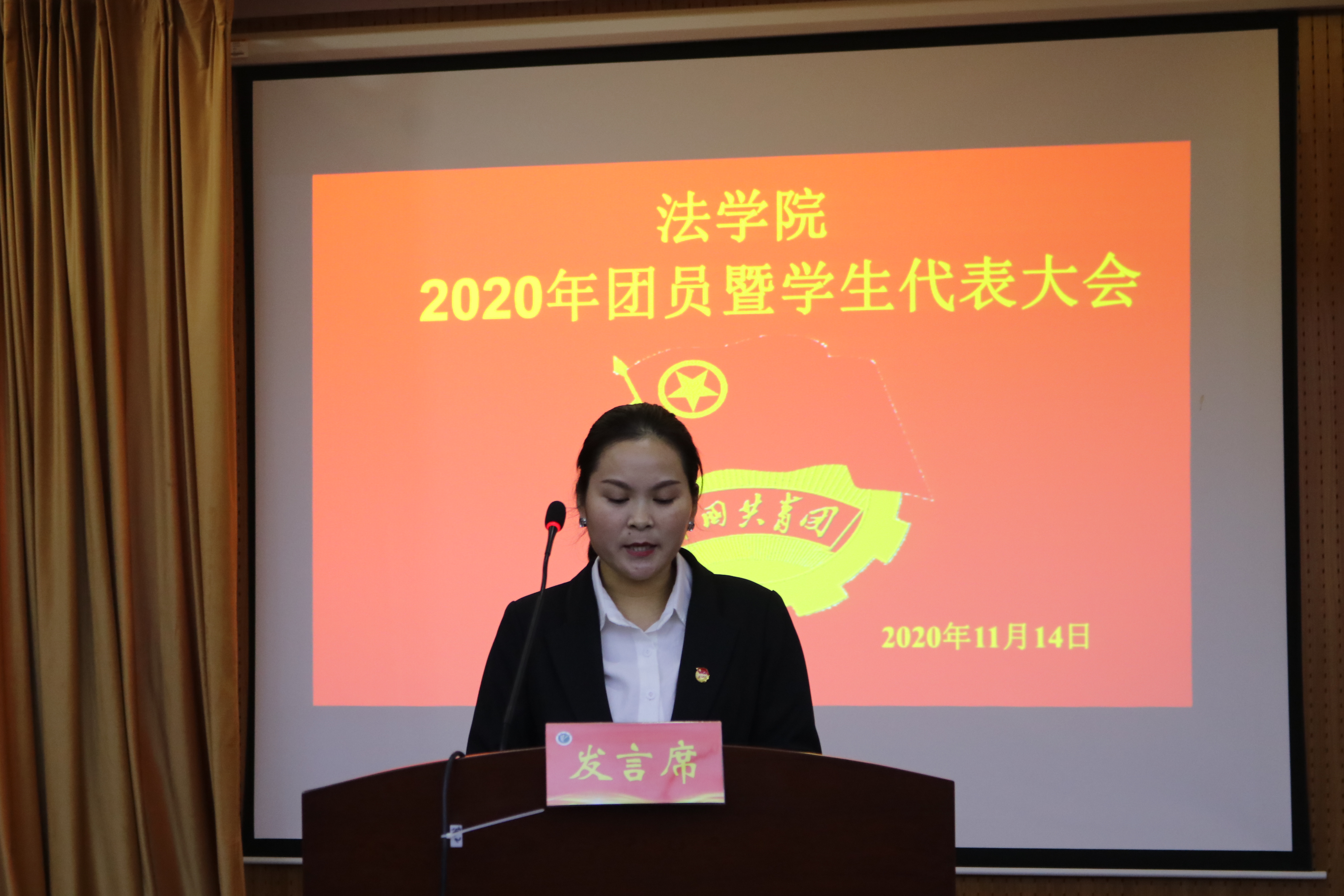 11月14日下午三时,共青团bat365中文官方网站2020年代表大会暨bat365中文官方网站2020年学生代表大会在C合二模拟法庭成功召开。校团委副书记史若延、我院党委书记孟凡根、党委副书记黄春建、团委副书记杨晓丽、工会老师李晓可、校学生会副主席赵雪岩及其他兄弟院系代表出席本次大会。来自bat365中文官方网站各班级的团员代表、学生代表共46人参加了本次会议。大会由党委副书记黄春建主持。