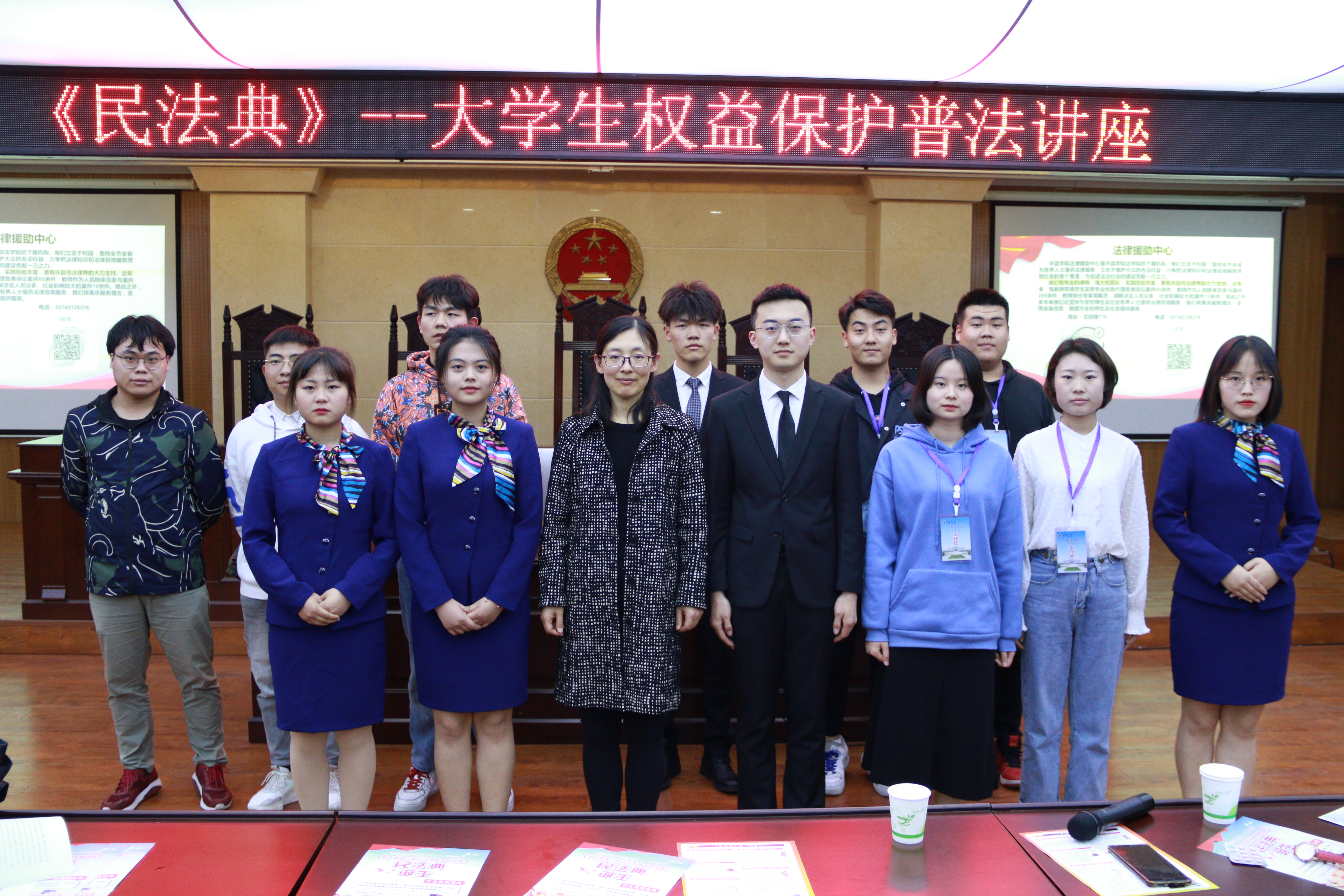 4月23日下午,我院在C楼模拟法庭开展《民法典》大学生权益保护普法教育讲座,本次讲座由我院魏庆爽老师主讲,张一凡同学主持,我院团委副书记杨晓丽老师、校学生会李铭扬同学和全校200余名学生参加此次讲座。