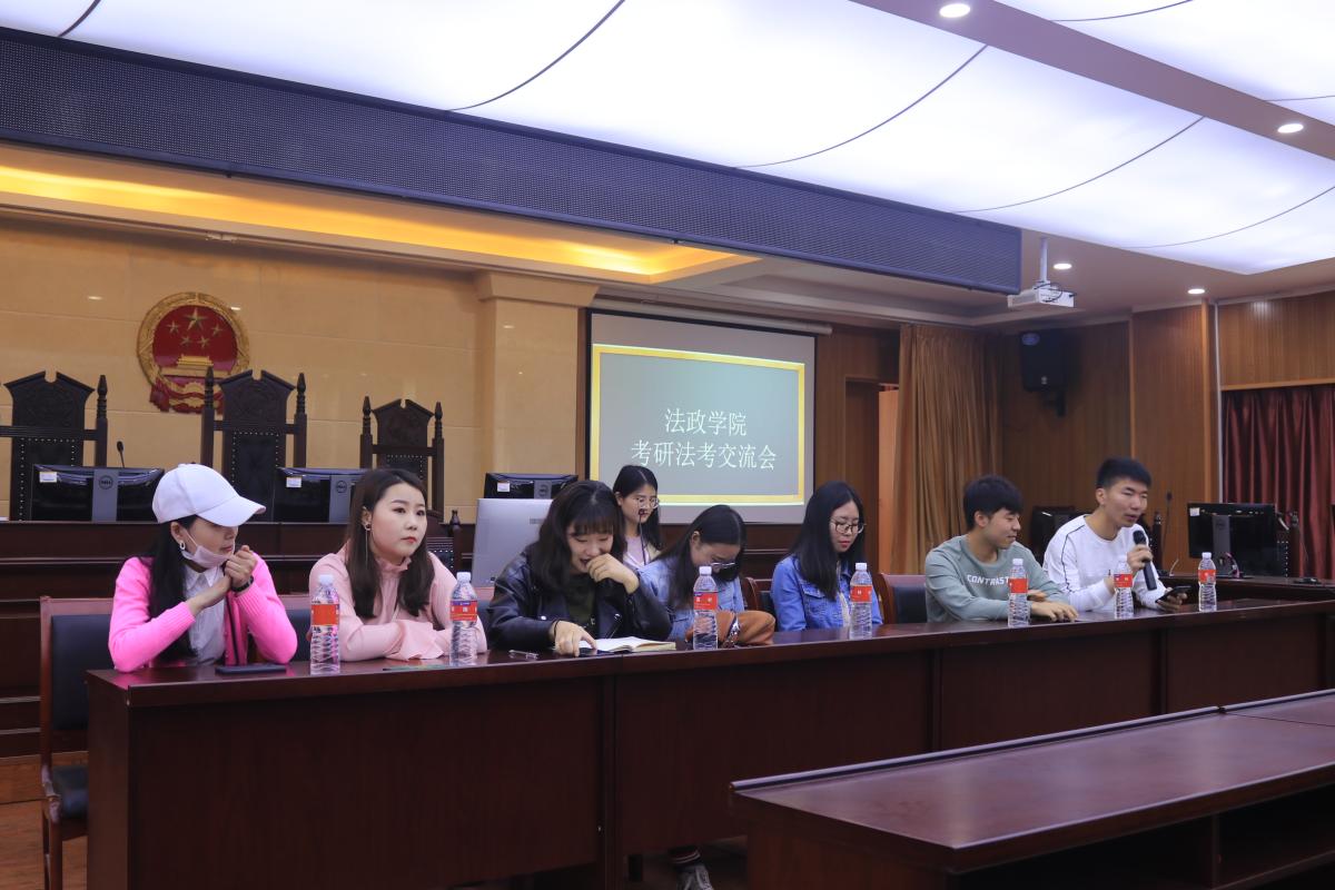 为了进一步提高我院学生的考研法考热情,明确考研法考目标,掌握相关考研法考技巧,2019年5月8日上午10点,bat365中文官方网站2019年考研法考交流会在C合二模拟法庭成功召开。本次交流会由团总支负责人苏芳老师主持,bat365中文官方网站学习部组织承办,我院2015级7名考研法考优秀学生做经验分享,2016、2017级法本学生参加了此次交流会。