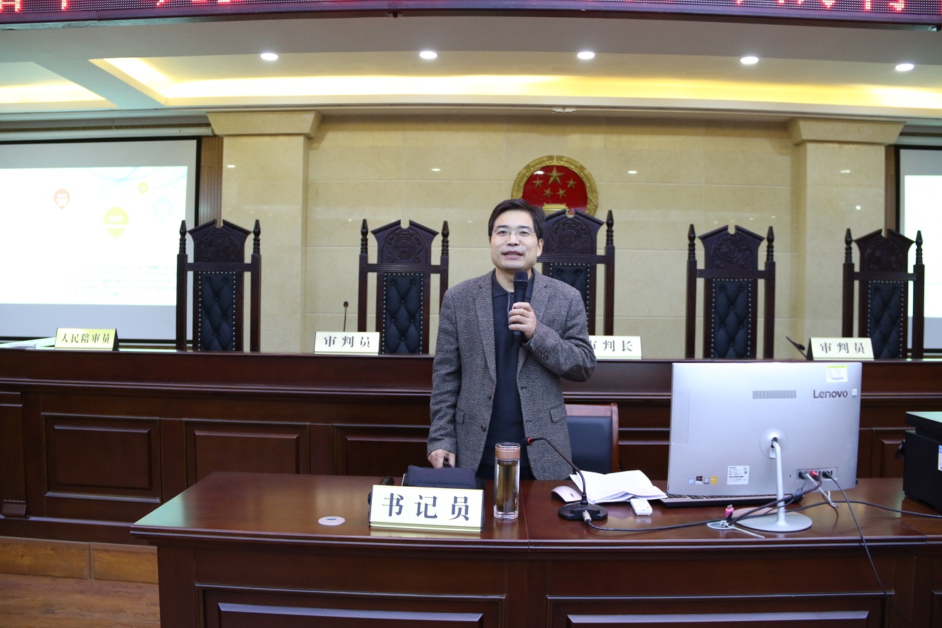 2020年10月14日晚19时30分,我院于C合二模拟法庭开展了以“不负韶华,筑梦远航”为主题的入学教育讲座,本次讲座由我院院长周耀宏主讲,2020级辅导员李静雅老师主持,全体新生到场聆听。